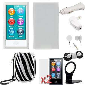 Gtmax 9 Items Essential Accessories Bundle Kit For The New Ipod Nano 7g / Apple Ipod Nano 7th Generation / 2012 New Model-- Zebra Waterproof Storage Eva Case & Silicone Case Included Feature